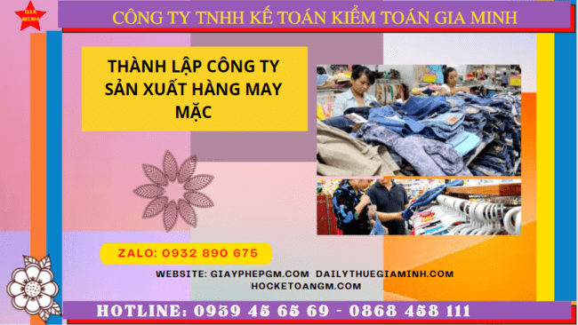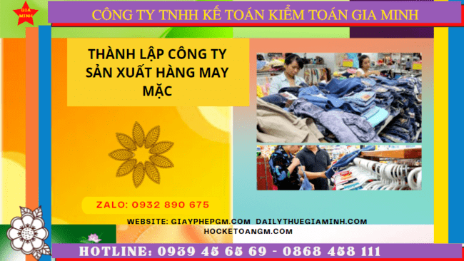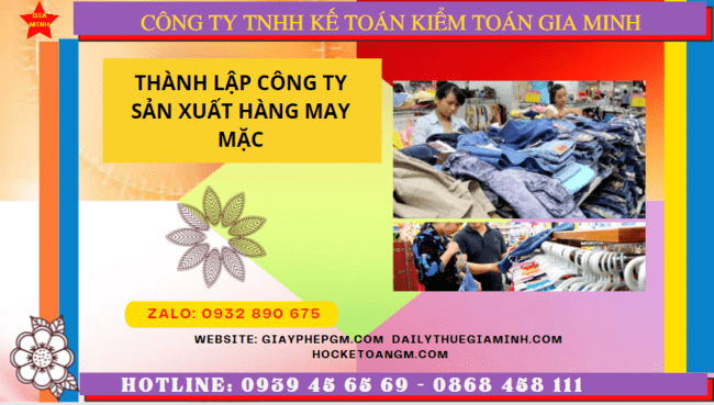 Thành lập công ty sản xuất hàng may mặc tại thành phố hà nội Thành lập công ty sản xuất hàng may mặc tại Thành phố Hà Nội là...