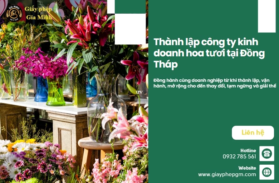 Bạn đang muốn bắt đầu kinh doanh hoa tươi tại Đồng Tháp nhưng chưa biết thủ tục pháp lý? Dịch vụ thành lập công ty kinh doanh hoa tươi...