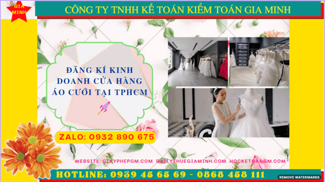 Đăng ký kinh doanh cửa hàng áo cưới tại TPHCM Để mở cửa hàng kinh doanh áo cưới thành công bạn cần phải trải qua 4 bước dưới đây....