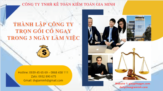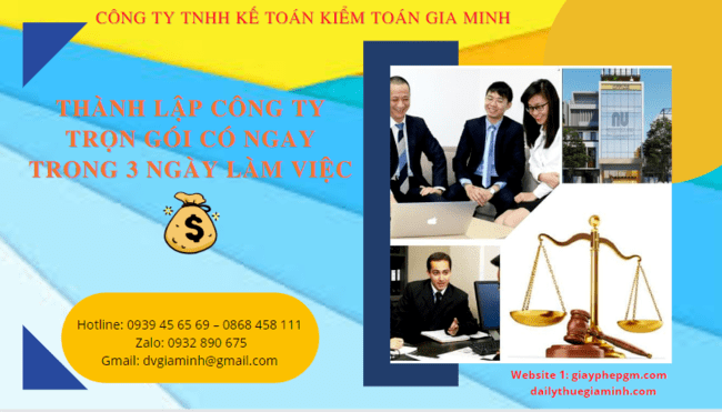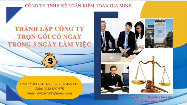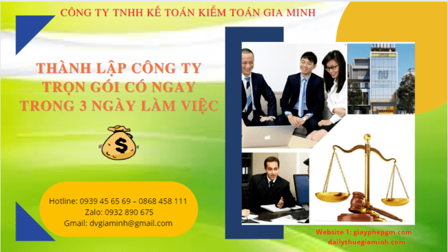Gia Minh là đơn vị chuyên nhận làm dịch vụ thành lập công ty trọn gói tại Vĩnh Phúc có ngay trong 3 ngày làm việc. Đến với Gia...