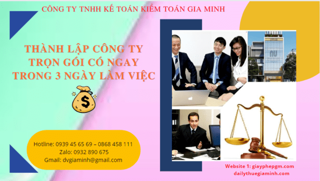 Thành lập công ty trọn gói tại ninh bình có ngay trong 3 ngày làm việc Gia Minh là đơn vị chuyên nhận làm dịch vụ thành lập công...