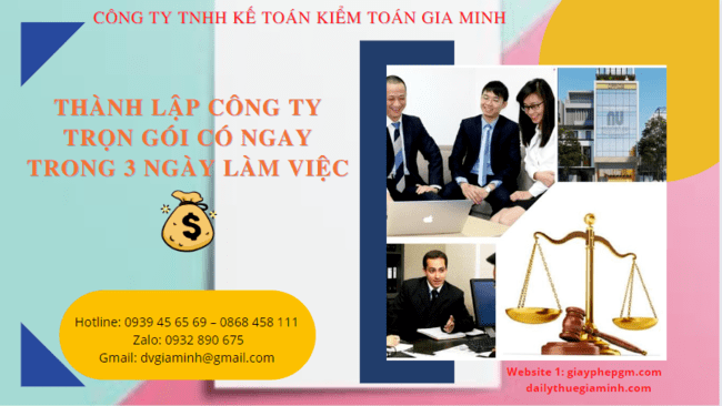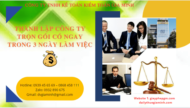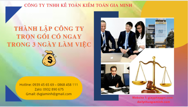THÀNH LẬP CÔNG TY TRỌN GÓI TẠI TRÀ VINH CÓ NGAY TRONG 3 NGÀY LÀM VIỆC Gia Minh là đơn vị chuyên nhận làm dịch vụ thành lập công...