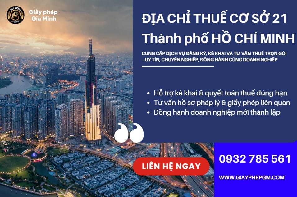 Địa chỉ Thuế cơ sở 21 thành phố Hồ Chí Minh là đơn vị trực thuộc Cục Thuế TP.HCM, có nhiệm vụ tiếp nhận, xử lý và hỗ trợ...
