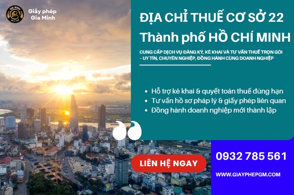 Địa chỉ Thuế cơ sở 22 thành phố Hồ Chí Minh là đơn vị hành chính trực thuộc Cục Thuế TP.HCM, có nhiệm vụ tiếp nhận, hướng dẫn và...