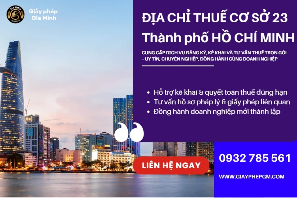 Địa chỉ Thuế cơ sở 23 thành phố Hồ Chí Minh là đơn vị hành chính trực thuộc Cục Thuế TP.HCM, có nhiệm vụ tiếp nhận, xử lý và...